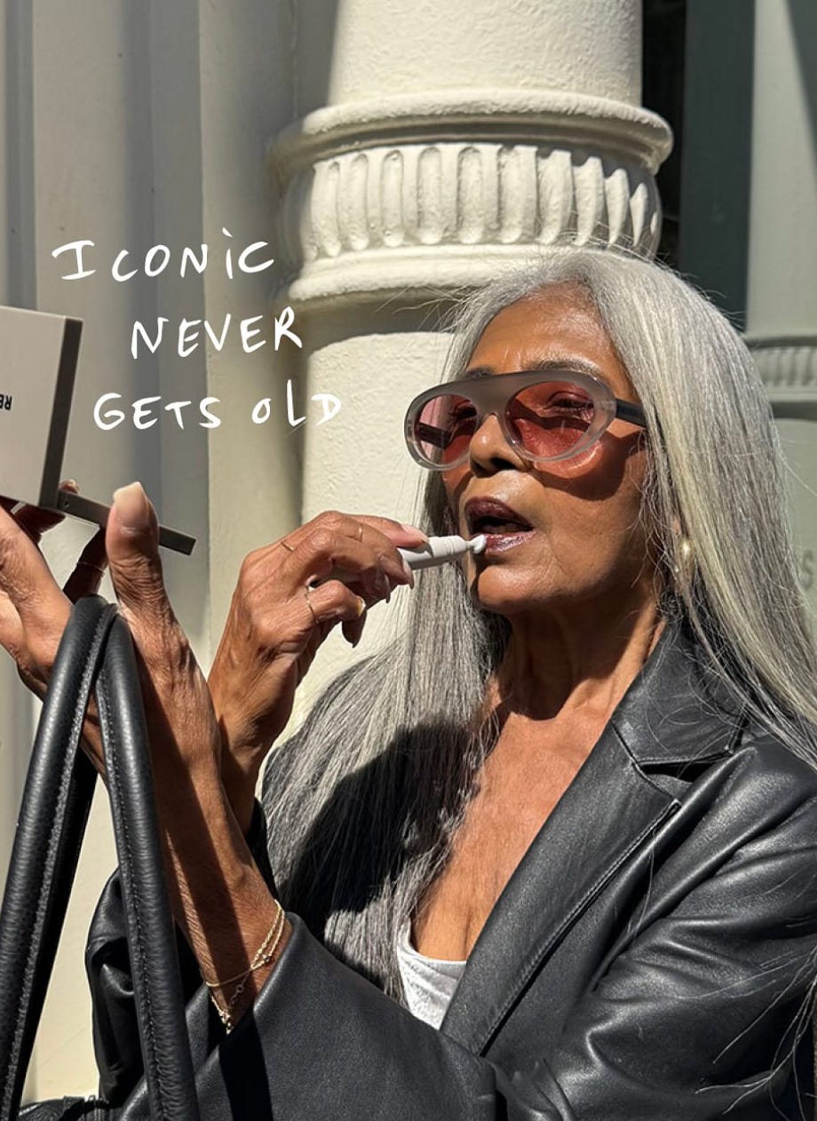 I love this Iconic Never Gets Old campaign from Refy, but I almost wish they found a way to spotlight the age thing without calling it out. If we’re gonna normalize it, normalize it. You know? I can’t wait until beauty is there entirely.